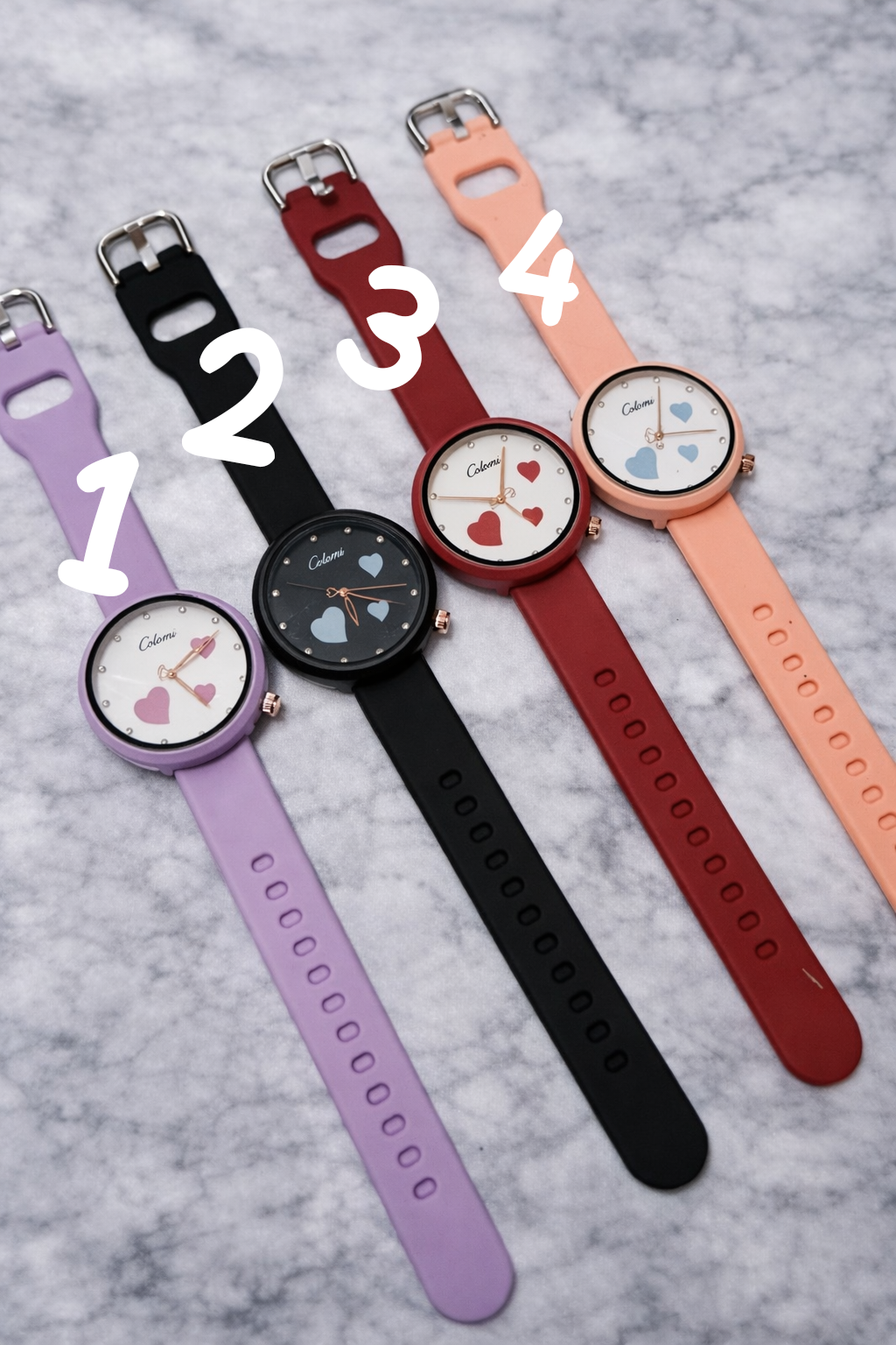 ساعت بلون بند سیلیکون رنگ پاستلی صفحه قلب قلبی